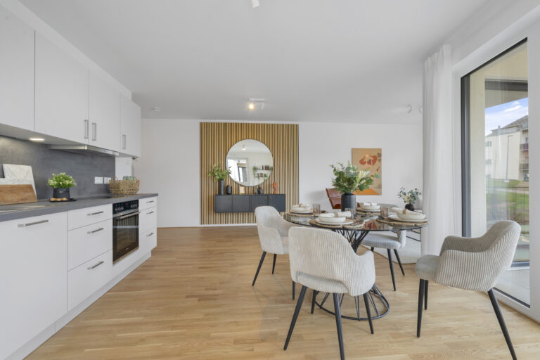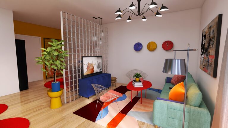 3D Planung – Wohn-/Essbereich in Dopamin Chic
